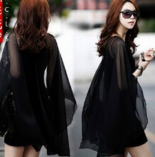 2016大码夏季新款休闲宽松性感蕾丝蝙蝠衫开衫防晒衫外套