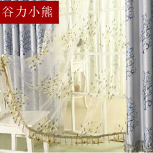 北欧窗帘乡村田园风格清新绣花半遮光定制窗帘卧室阳台松叶花