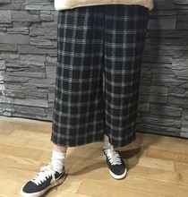 韩国ulzzang春季复古学院风高腰宽松百搭格子毛呢九分裤阔腿裤女