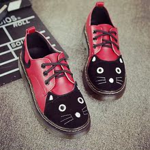 英伦风女鞋学院风真皮马丁鞋低帮平底猫咪单鞋复古中跟学生小皮鞋