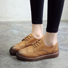 英伦风女鞋春学院风系带学生单鞋圆头平底小皮鞋复古布洛克牛津鞋