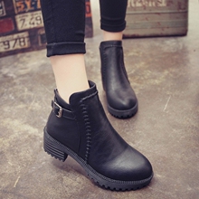 2015秋冬新款韩版方跟圆头短靴后拉链加固保暖切尔西靴缝线马丁靴