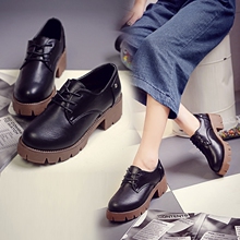 2016春秋新款英伦复古圆头女鞋粗跟单鞋中跟松糕厚底休闲鞋小皮鞋