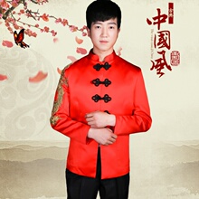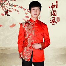 中式新郎结婚礼服唐装汉服古装敬酒服红色中山装秀禾服男士演出服