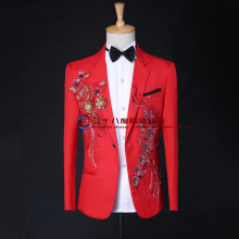 新款男士红色亮片西服套装 大合唱舞台演出服 歌手主持人礼服男