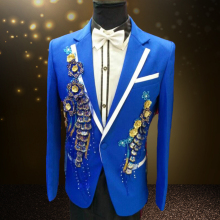 新款亮片西服套装修身舞台 大合唱演出服男士礼服歌手主持人服装