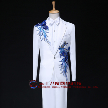亮片西服套装白色舞台男士大合唱演出服歌手男主持人表演礼服新款