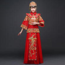 2017新款秀禾服新娘结婚红色礼服敬酒服中式婚礼秋冬龙凤褂旗袍女