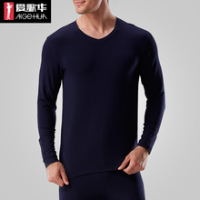 爱歌华男士薄内衣低领打底衫保暖内衣上衣莫代尔无痕单件v领秋衣