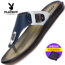 花花公子男鞋2017夏季新款透气人字拖夹趾露趾真皮凉拖英伦潮鞋子