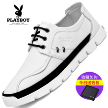 花花公子男鞋白色休闲皮鞋男真皮小白鞋系带低帮板鞋英伦男士潮鞋