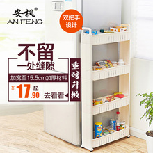 安枫卫生间置物架落地移动带轮厨房整理架夹缝车收纳加厚塑料多层