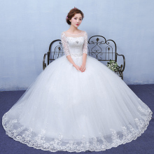 婚纱礼服 新娘齐地一字肩韩式长袖公主显瘦结婚婚纱2017夏季新款