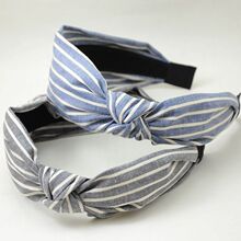 韩版打结发箍韩国宽边复古布艺牛仔质感灰蓝条纹发卡头箍束发饰品
