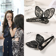 林志玲同款水钻蕾丝兔耳朵发夹bb夹韩国卖萌发饰品珍珠边夹刘海夹