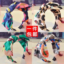 日韩简约气质皮质打结蝴蝶结头箍发饰韩国甜美绢纱兔耳朵发卡发箍