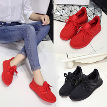 运动鞋女平底百搭系带休闲单鞋韩版红色女鞋夏季新款学生透气网鞋