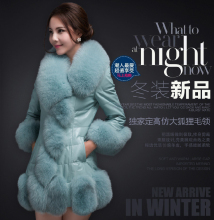 海宁皮草外套女2015秋冬新款韩版修身皮衣仿狐狸毛领大衣清仓特价