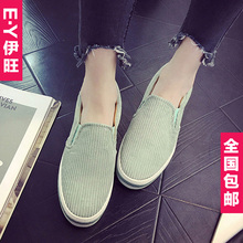 一脚蹬女夏天2017新款春季学生帆布鞋灯芯绒懒人鞋平跟低帮休闲鞋