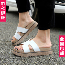 平底H凉拖鞋女夏季2017新款防滑中跟松糕罗马凉鞋厚底一字拖简约