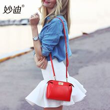 2017夏天新款小猫包牛皮斜挎包女包复古红色手提单肩包迷你小包包