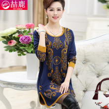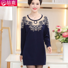 中年女装春秋长袖打底衫中长款连衣裙大码妈妈装套头毛衣女士上衣