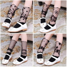 2017女童公主袜童袜黑色网纱拼接袜儿童百搭堆堆袜中筒袜子丝袜薄