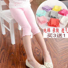 女童纯棉花边打底裤薄款弹性修身夏天中裤子小女孩公主七分裤百搭