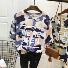 韩国东大门2017夏季新款迷彩字母印花破洞宽松百搭短袖打底T恤女
