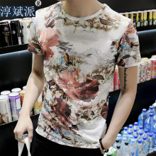 夏季印花短袖男潮修身花衣服短袖T恤男圆领半截袖男T恤潮流体恤男