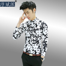 淳斌派秋季男士长袖花衬衫青年韩版修身花衬衣潮男夜店发型师寸衫