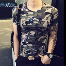 夏季个性迷彩T恤男韩版修身军迷短袖恤男半截袖印花体恤潮打底衫