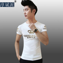 淳斌派夏季烫金皇冠纯棉短袖T恤男士韩版修身圆领半袖衣服打底衫