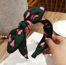 韩国新款蝴蝶结气质宽边发箍学院风百搭兔耳朵碎花条纹头箍发卡