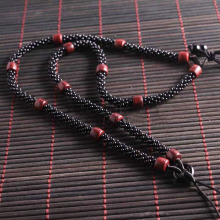 天然小叶紫檀木挂绳 男士款黑玛瑙玉米编织项链 玉佩绳子吊坠挂绳