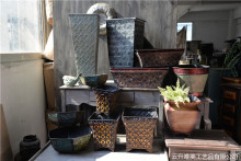 国外设计师创意家居庭院软装配饰绝美铁艺复古花器花桶仿古铁花盆