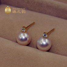王妃款进口AKOYA日本天然海水珍珠耳钉18k金镶钻极强虹光正圆无暇