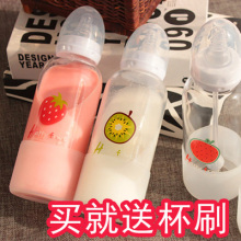 可爱学生成人奶瓶奶嘴吸管玻璃杯女士水果创意便携儿童杯防漏水瓶