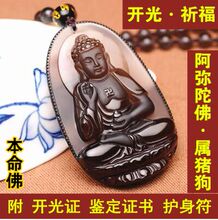 包邮开光乌金黑曜石阿弥陀佛吊坠生肖狗猪守护神本命佛项坠