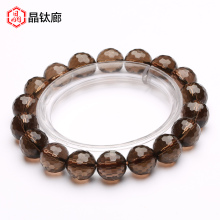 5A级切面天然茶水晶手链烟晶墨晶刻面茶晶手串男女款送长辈