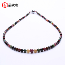 天然碧玺项链碧玺塔链毛衣链多彩红绿黑黄粉水晶项链正品