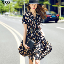 XXQ2017春新款时尚休闲连衣裙女款夏中裙中袖A字裙修身大码显瘦