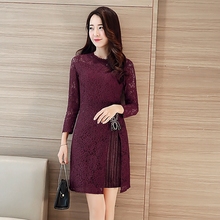 2017春季新品中长款蕾丝连衣裙韩版修身收腰A字裙九分袖打底裙潮