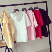 夏季女装牛奶丝光棉宽松带帽衫学生短袖bf原宿风大码连帽T恤女潮