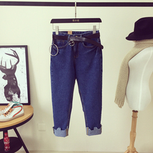 经典蓝色牛仔裤女2016冬季欧美复古水洗宽松高腰牛仔垮裤 送腰带