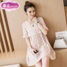 2017夏季哺乳衣连衣裙外出短袖喂奶裙韩版时尚辣妈产后修身喂奶衣
