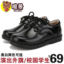 唯景男童黑皮鞋演出真皮儿童皮鞋男白色休闲男孩黑皮鞋表演鞋校鞋