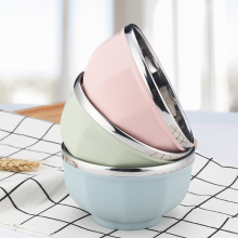 304不锈钢米饭碗双层隔热防烫彩色宝宝儿童防摔碗家用三只装