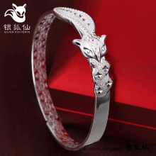 天天特价银狐仙足银手镯女狐狸旺姻缘招姻缘灵狐9999纯银时尚手镯