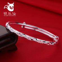 银狐仙正品999纯银手镯女款满天星银镯子足银饰品送女友妈妈纯银